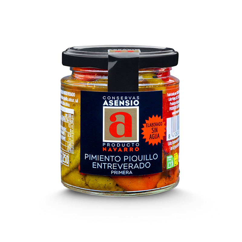 Pimientos del Piquillo ENTREVERADOS, con mezcla de pimientos rojos, verdes y naranjas.